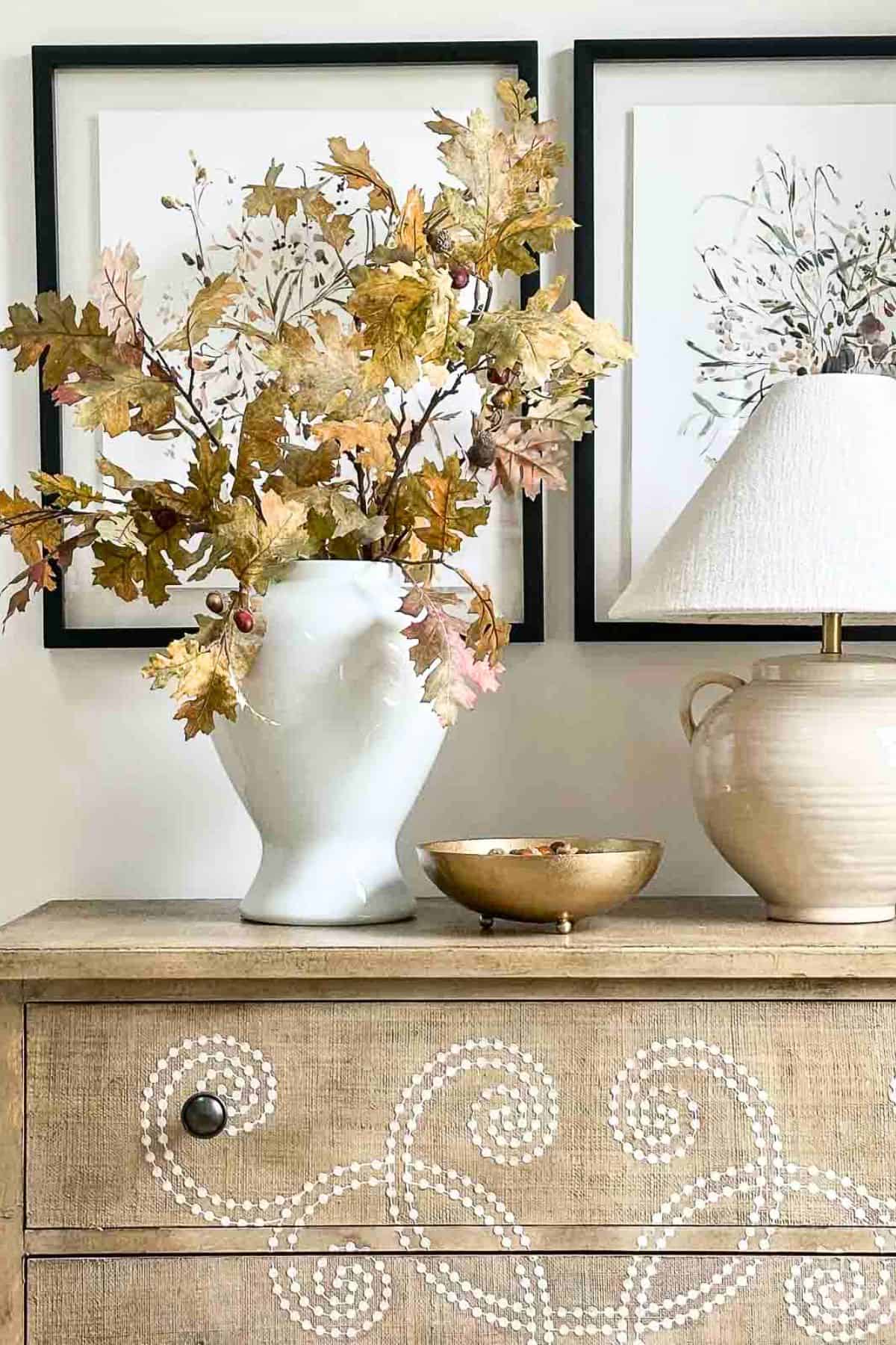 • Add a few branches of faux fall leaves for extra color.