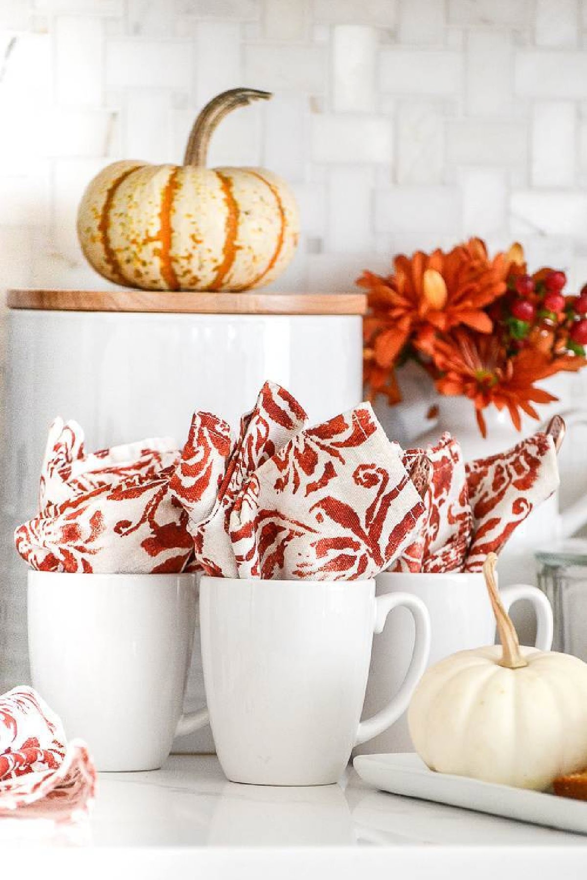 Enjoy coffee, tea, or your fall drink of choice by creating a stylish bar on your kitchen countertop.