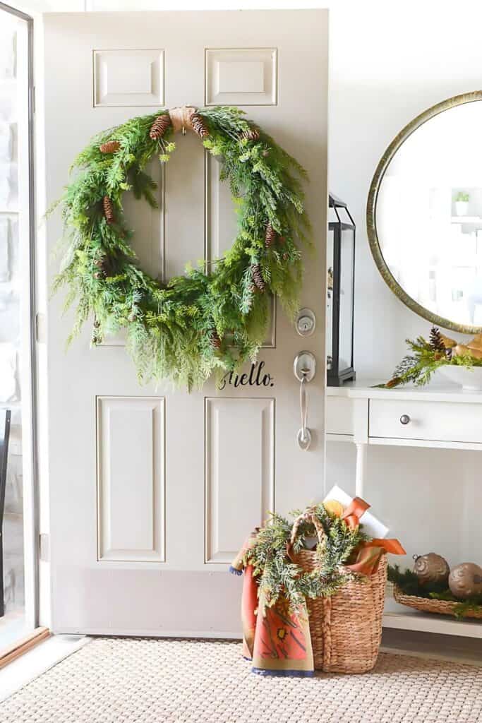 - Use Fresh Pine or Greenery in the Entryway – Place fresh greenery or pine boughs around the entry to add a natural touch.