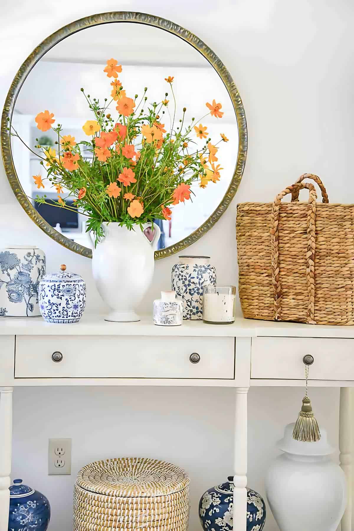 Using summery accent decor to decorate your home for summer creates a light, fresh, and inviting atmosphere that complements the season’s relaxed feel. Use decor, flowers, textiles, and even lamps with a summer aesthetic.