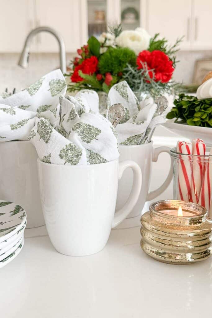 - Use decorative Christmas dish towels. See THESE and THESE.