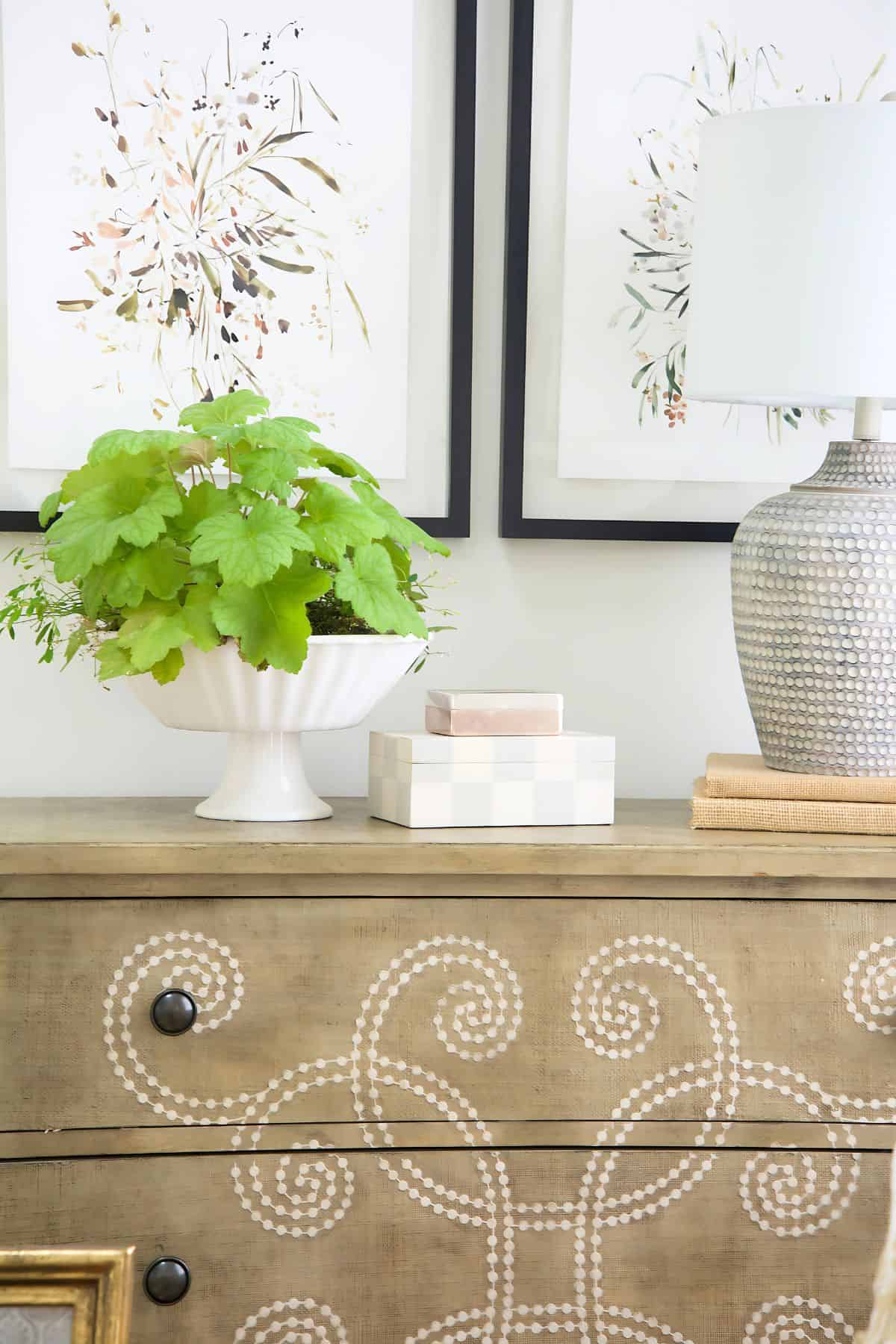 - Add greenery with a potted plant or faux plant.
