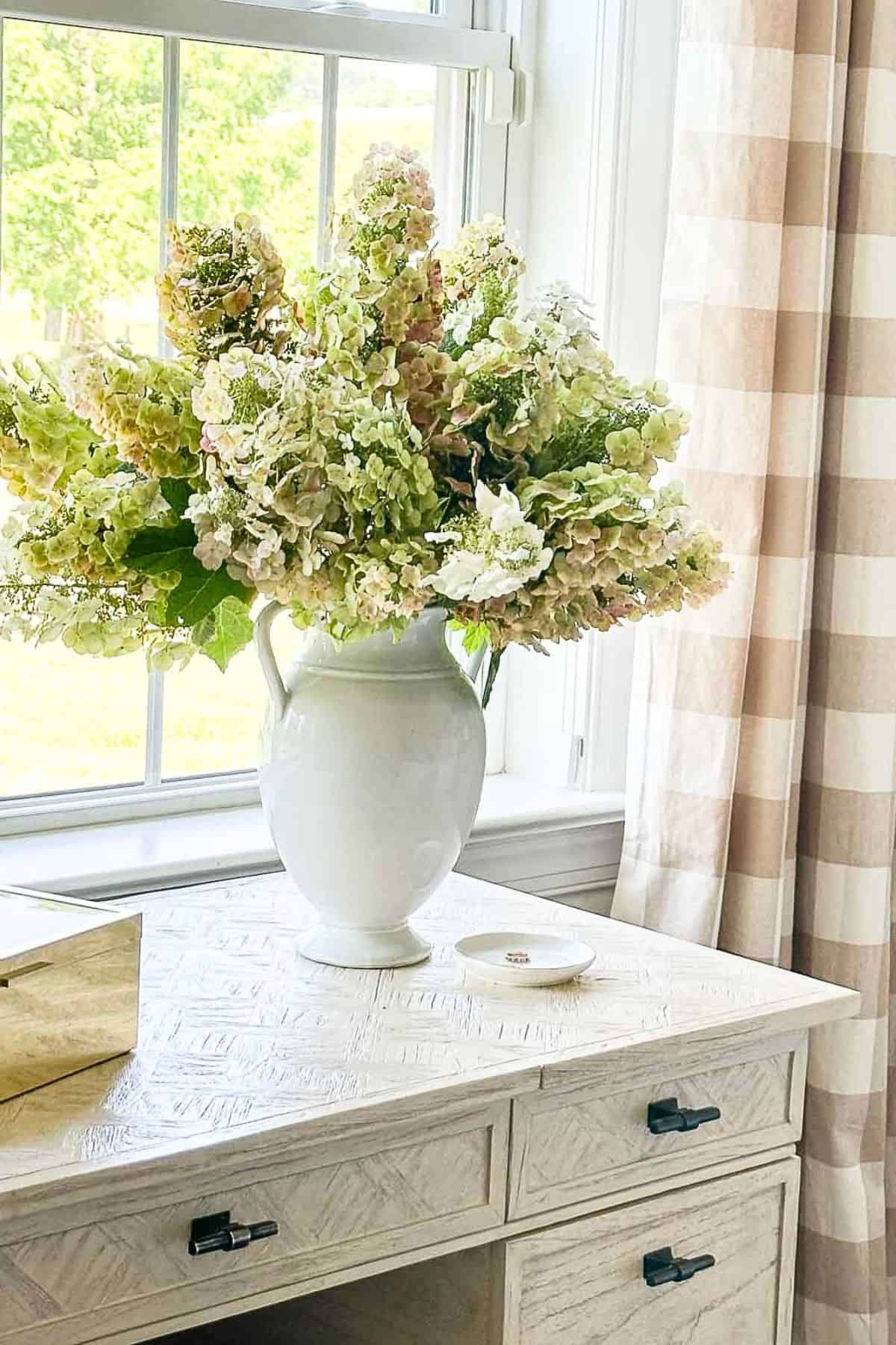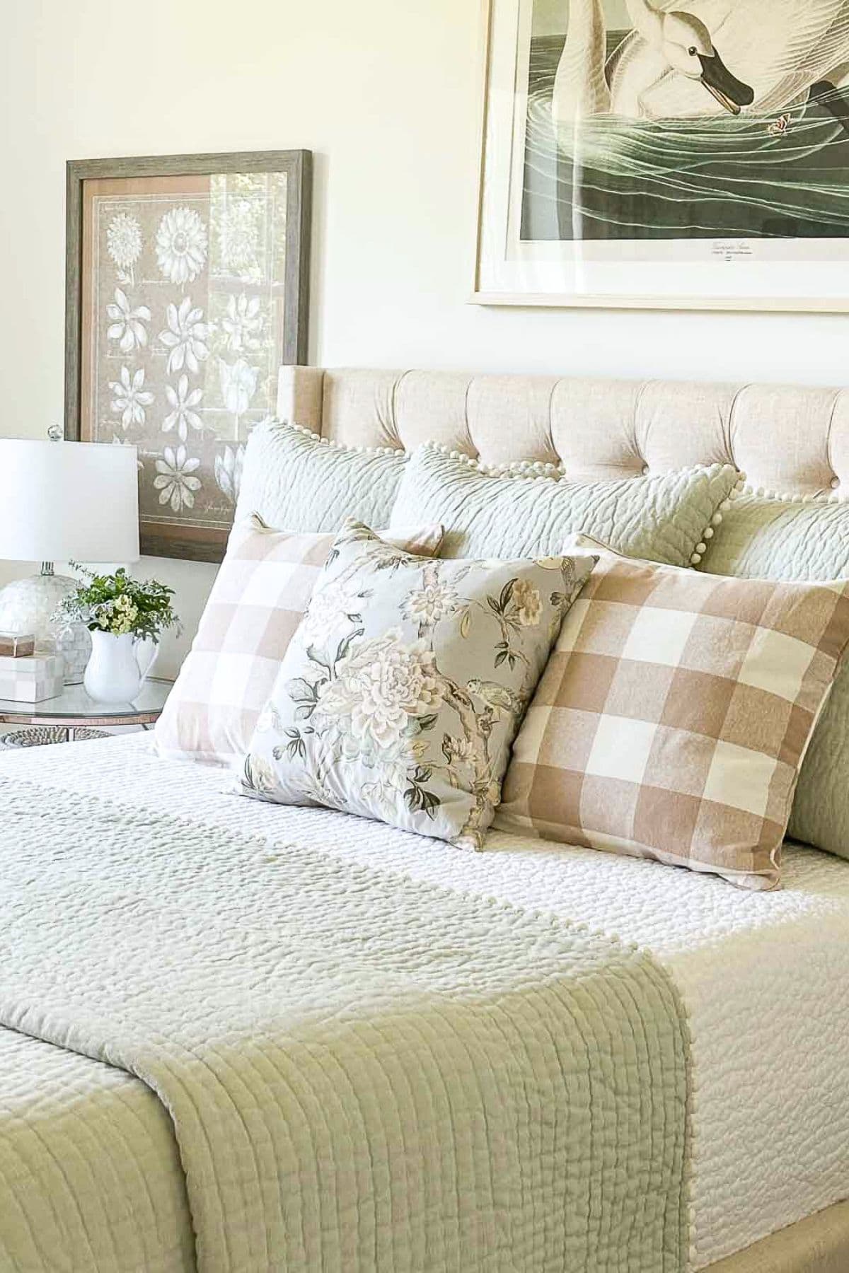 Fresh flowers and greenery create a calm atmosphere, and that’s exactly what we want in our bedrooms. The beauty of these lovely touches is that they can reflect the season or your mood. Flowers on my vanity and nightstand are a must!