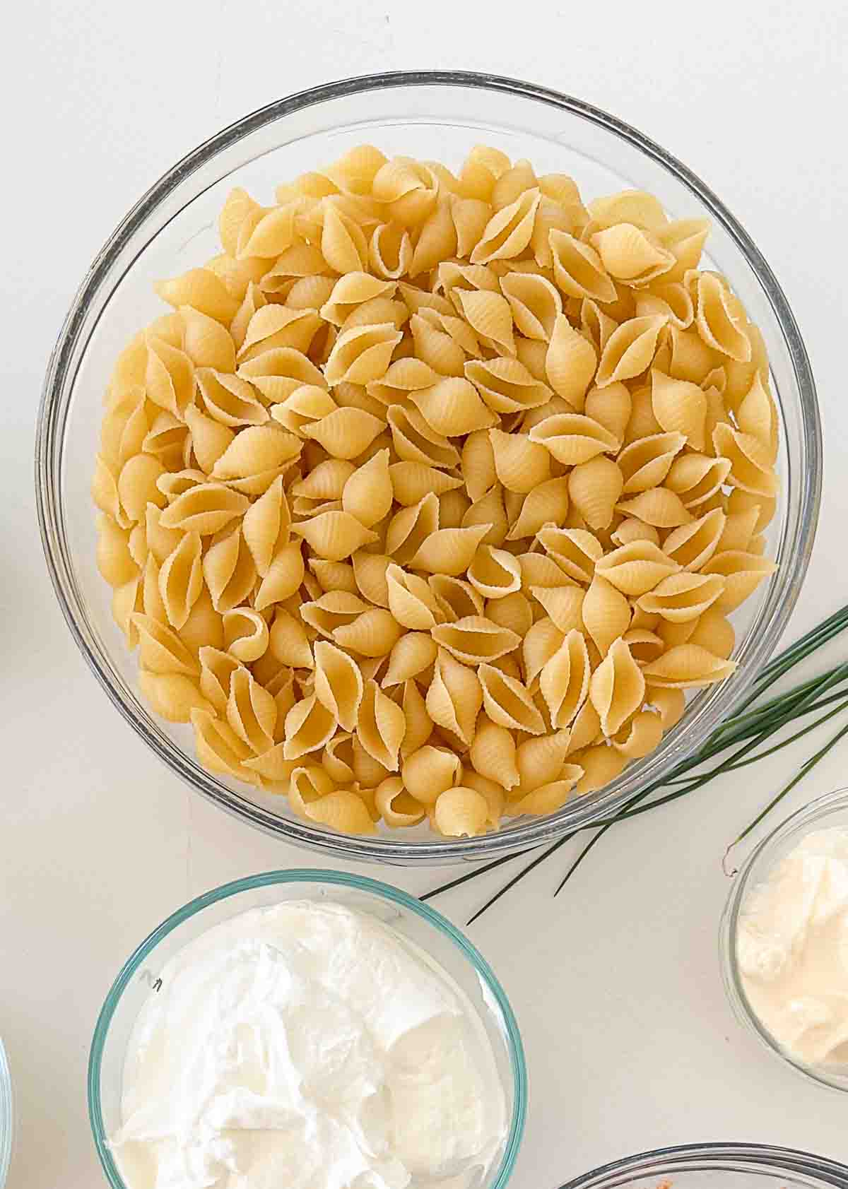 Ingredients For Creamy Bacon Ranch Pasta Salad