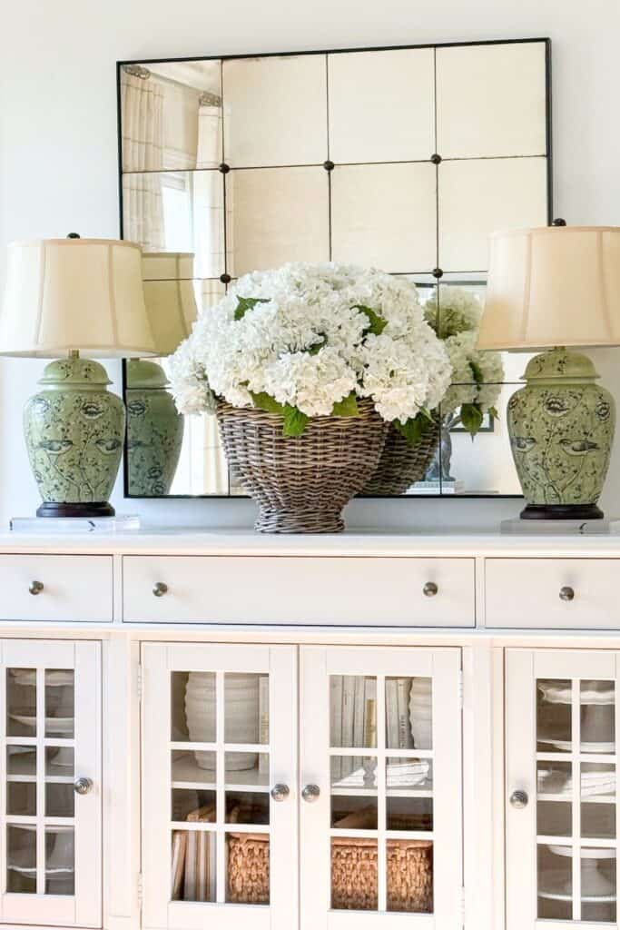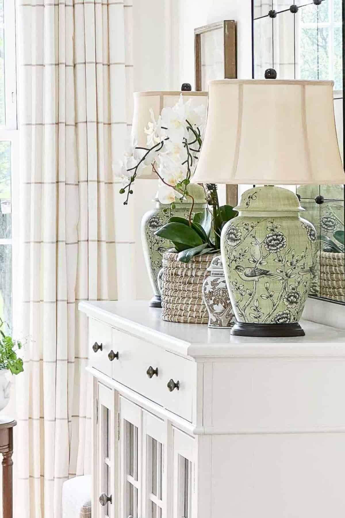 If you have a hutch, buffet, or another flat surface in your dining area, add a small green accent there too. Repeating the color in a few places helps the whole room feel connected and complete.