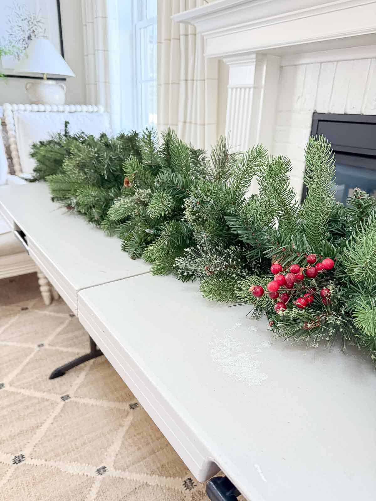Choose a garland at least as long as the surface you are decorating. A little extra length lets you add a soft drape or trail pieces over the edges.