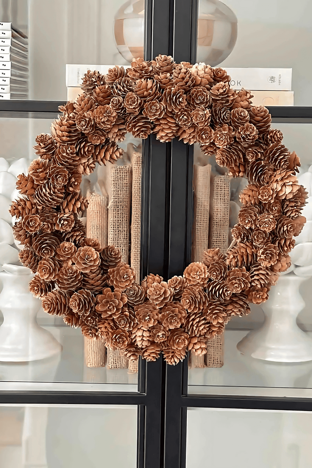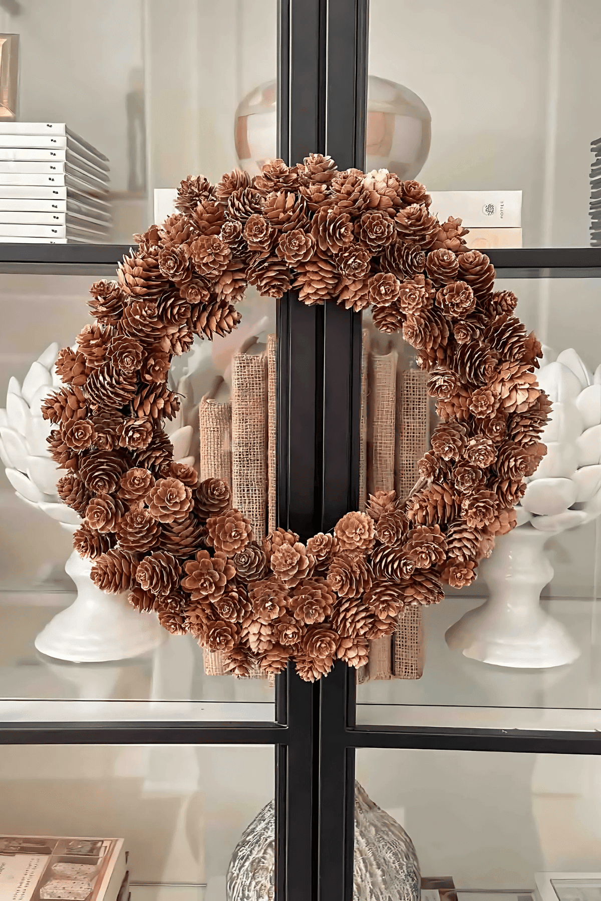 But for me, there’s nothing more beautiful than the timeless simplicity of a natural pinecone wreath.