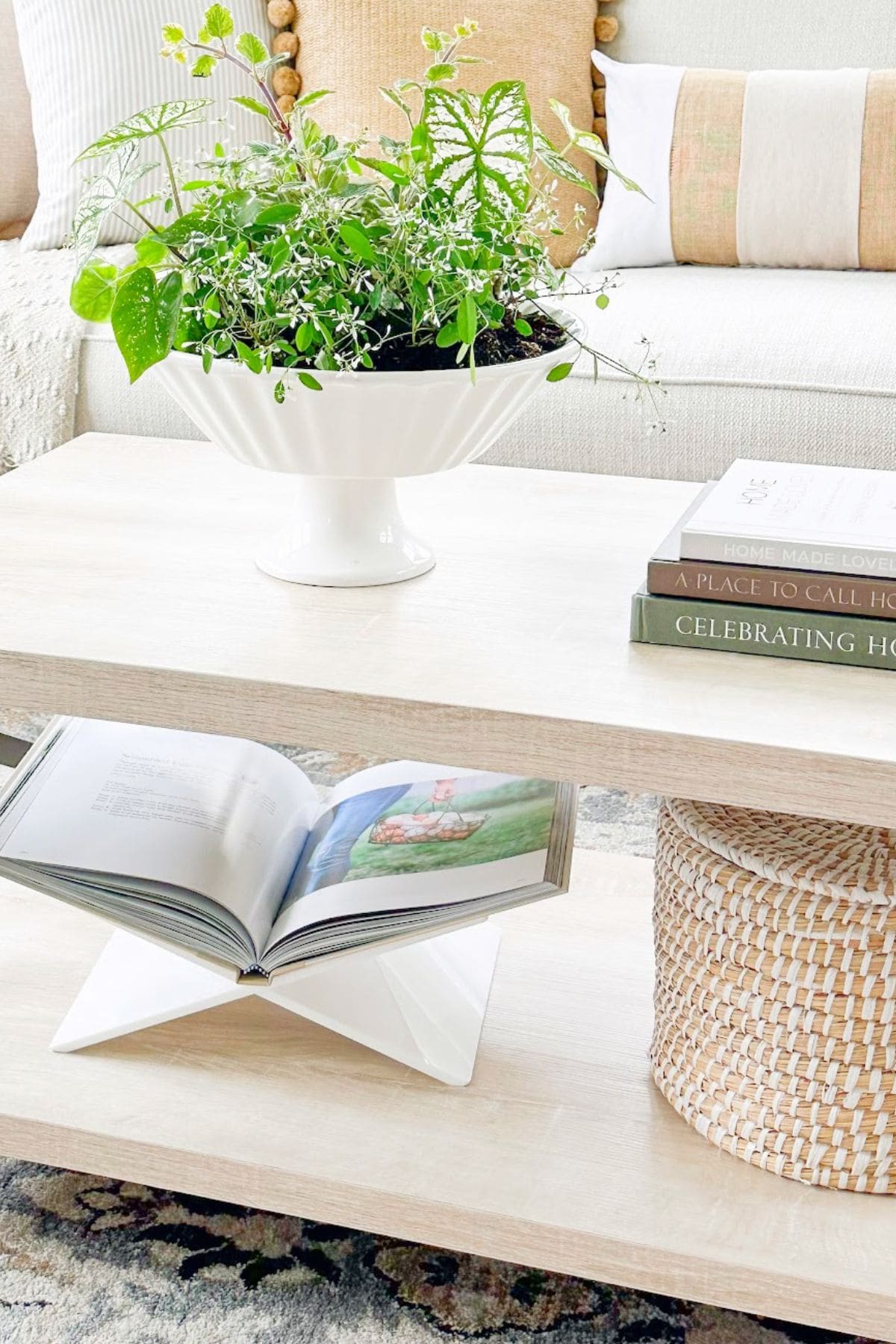 Keep clutter at bay by picking up everything that does not belong in a room, often! Clutter is a magnet for more clutter, so it will multiply if you do not keep on top of it! Even belongings that we use in a small room, like books and magazines, can look messy and very noticeable. I like to stash these types of things in my favorite storage, baskets!