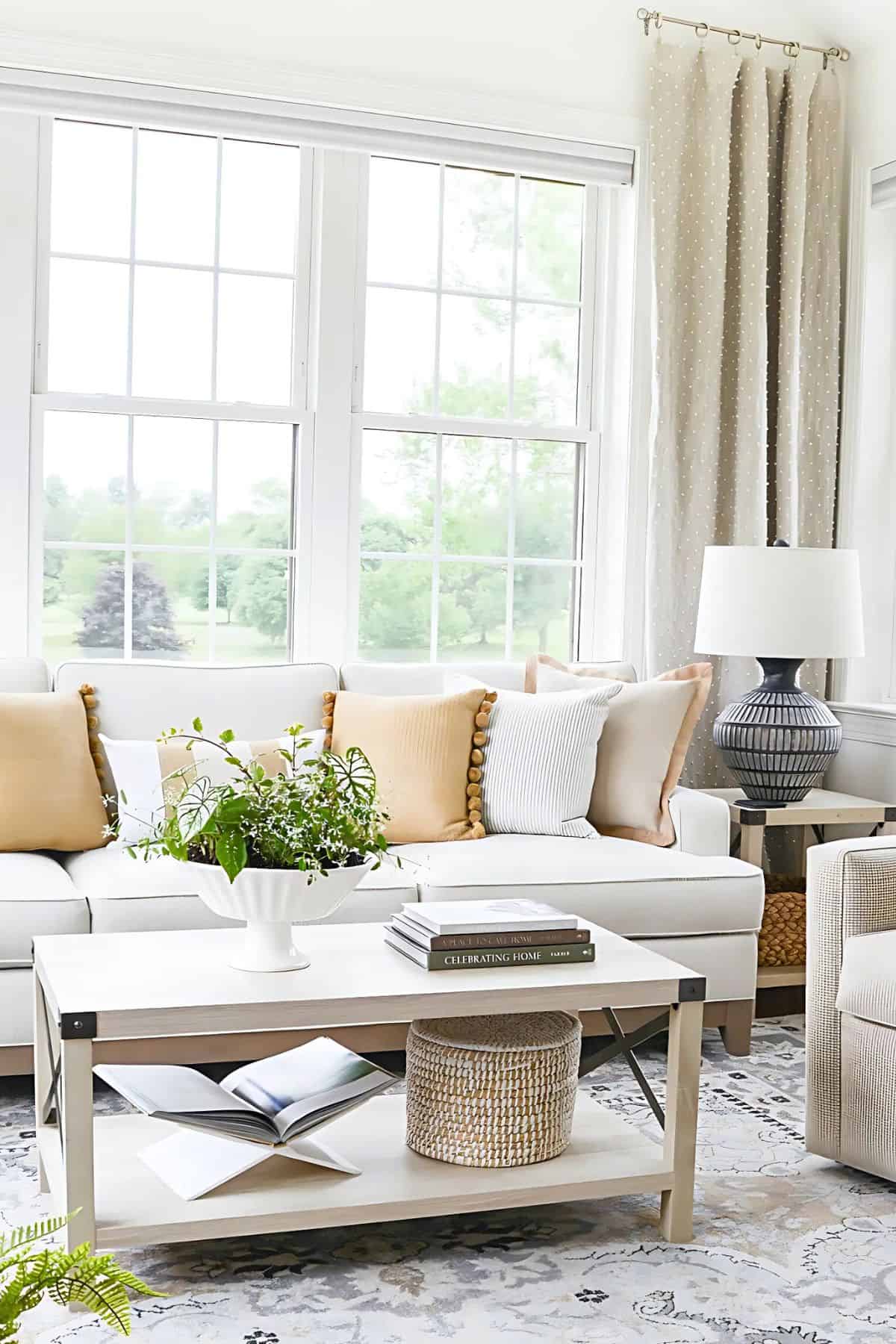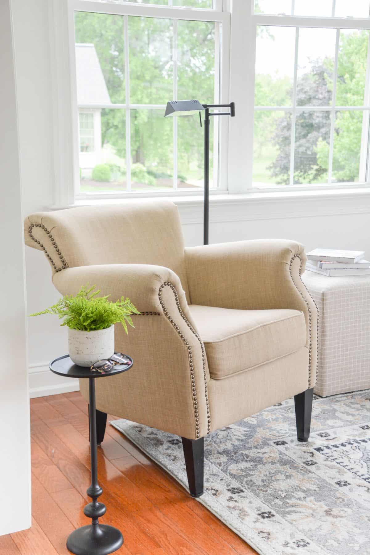 I love the windows that bring in all the natural light.The neutral colors are so calming and cozy.I remember you bought a sectional for the room,what did you do with it ??