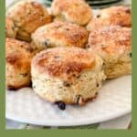 These scones are best served warm. Butter, jam, clotted cream, or flavored butter are all wonderful choices. I especially love them, sliced warm, with honey butter and a nice slice of ham in between.