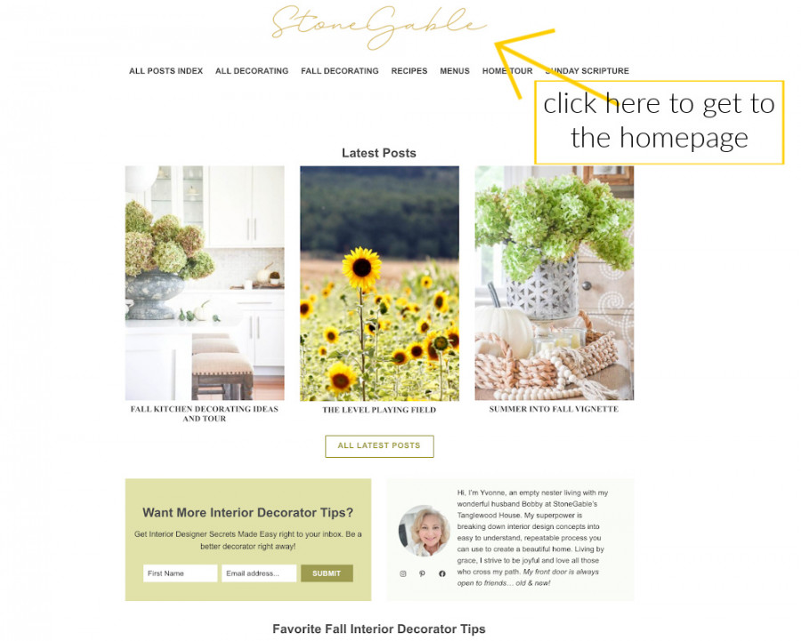The next and largest section of the homepage is BEST DECORATING IDEAS FOR YOUR HOME. This is where you will find all the decorating posts on StoneGable. This is really the meat of my blog!