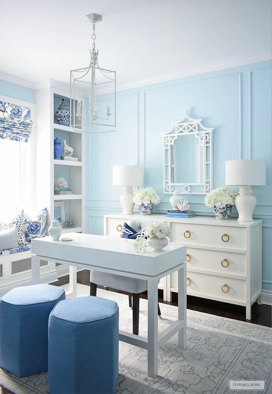 Elegant Home Office Refresh in Blue + White Chinoiserie