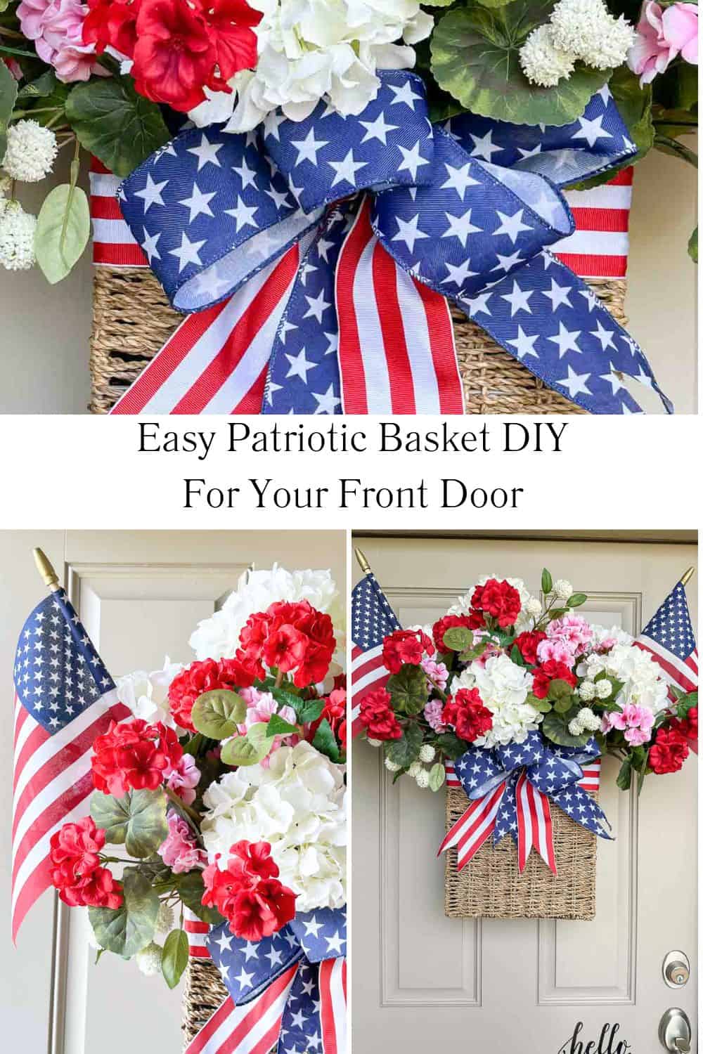 Create a patriotic front door basket with simple supplies. This is an easy DIY to decorate for the 4th of July and summer!