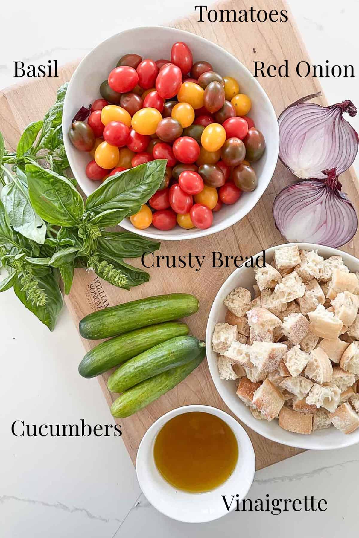 Vinaigrette– This tangy dressing brings the whole salad together and soaks into the bread for incredible flavor.