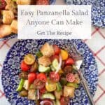 Panzanella is a rustic Tuscan salad made with stale bread, summer vegetables, and a tangy red wine vinaigrette.