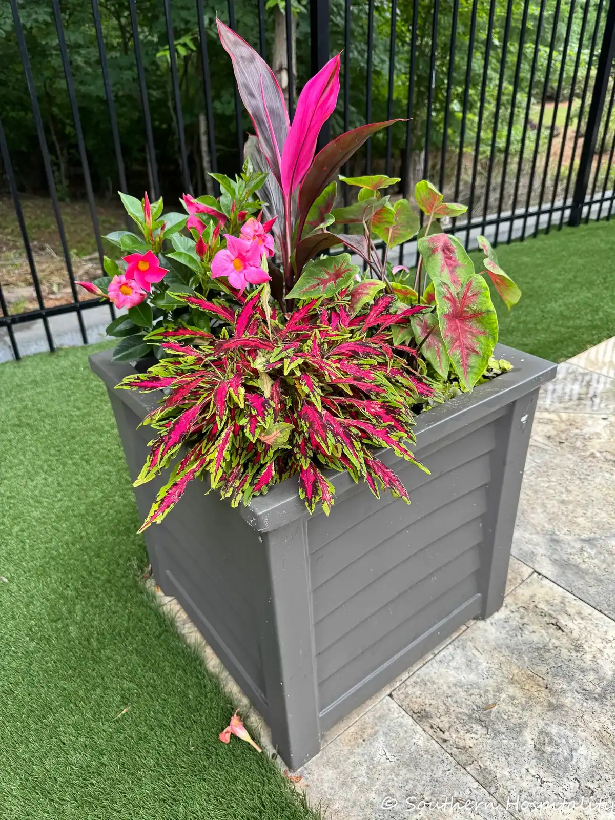 If you love to plant summer planters, you’re in the right place today! I got mine planted about a month ago and they are growing well, so I’ll share the plants I got as well as how they are looking after a month.