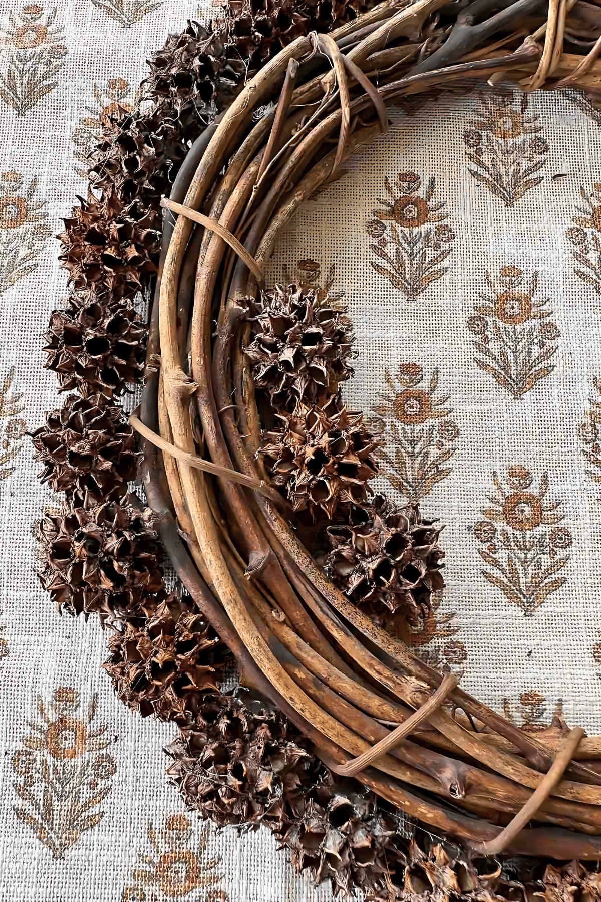 SIDE VIEW OF SWEET GUM BALL WREATH