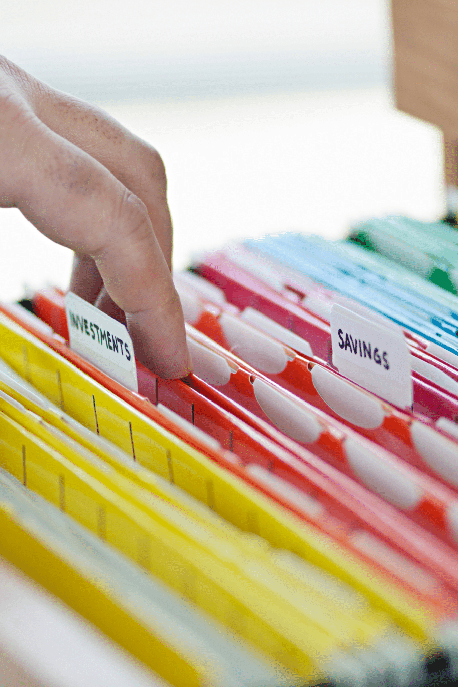 - File Cabinet: Store important documents in labeled folders and a filing cabinet. I like THESE.