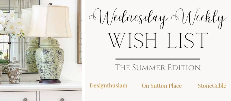 This week’s Wish List features a curated collection of summer ideas for your home, Christmas in July, delicious recipes, seasonal clothing, charming homes to visit, easy home DIYs, and lots more. Our lists have a little something for everyone.